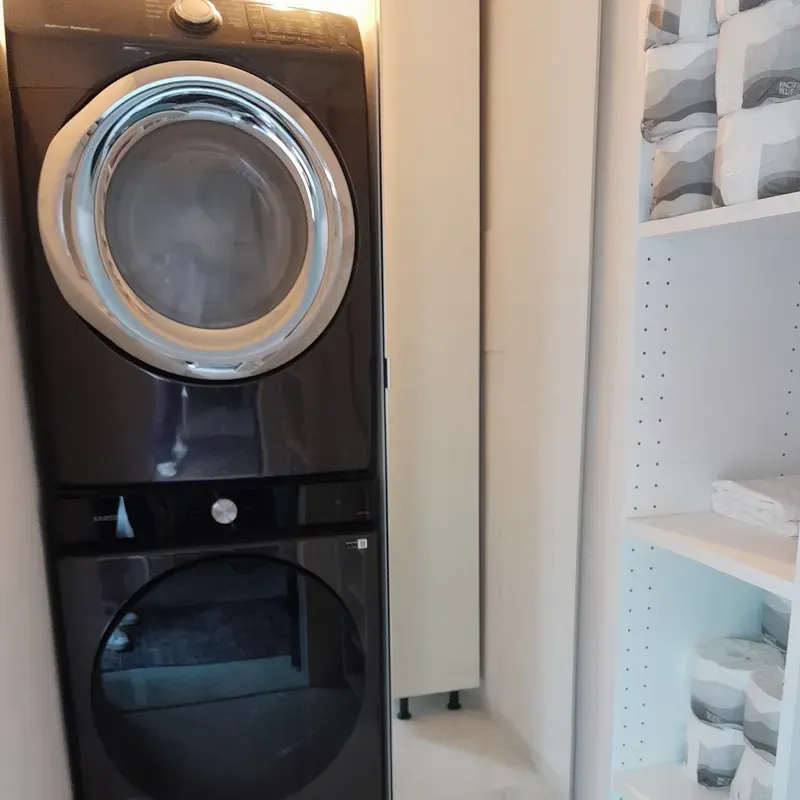 Villa offers parking space for three cars. LG High Efficiency Washer and Dryer.