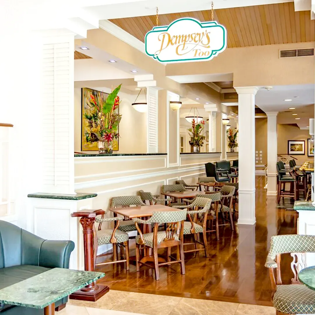 Located just off the main lobby, Dempsey's Too offers prime seating indoors or out, with views of the 18th green of the Saddlebrook golf course.